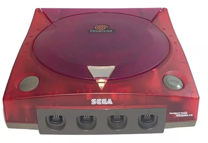 This gorgeous transparent red and gray console came with a matching controller, gray VMU, and a special copy of the game with some extra goodies. I'm such a sucker for transparent technology.
